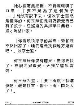 蔡政良又說Kindle沒有fit-to-height功能,若有,超出的幾個字也可縮回顯示。怎麼辦呢?他也真高明,他發現如果先將Kindle字體放大成150%, 再選fit-to-width將字體縮小, 整個版面即可完整顯示,如右圖。可惜閱讀至下個章節時字型又會自動被放大。